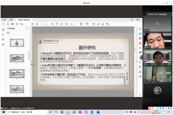 2020年11月27日晚7点,经济史“珞珈卿云”中青年论坛第1期在一楼一凤