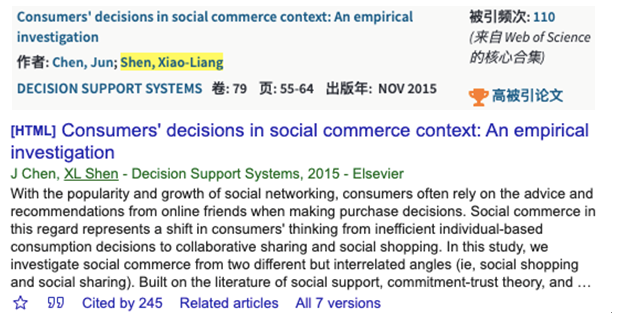此次研究论文入选ESI高被引论文不仅反映了沈校亮教授在该领域的学术影响力和对学术前沿方向的前瞻性把握,也代表着国际学术界对沈校亮教授在社会化电商领域研究工作和学术贡献的再次肯定。