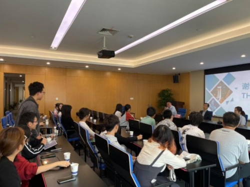 在一睹沉稳气派的公司办公楼大厅后,同学们来到四楼会议室,浅啜一杯公司的热茶,正式开始了本次参访。