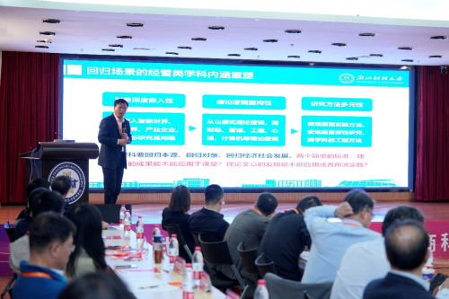 魏江教授指出,从全球高等教育发展历史看,经管学科是顺应经济发展而产生的,没有融合经济社会发展需求,就没有发展前途。未来经管学科建设发展要始终洞悉国际国内发展形势和政治经济社会发展总体趋势,找准定位,积极有为。经管学科来自经济学、社会学、心理学等学科,应以学科交叉、数理分析为基础,回归本源、回归研究对象、回归经济社会发展。