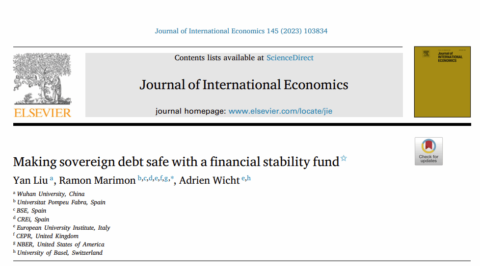 金融系刘岩副教授与欧洲大学学院Ramon Marimon教授、Adrien Wicht博士合作完成的学术论文 “Making Sovereign Debt Safe with a Financial Stability Fund” 在2023年12月于Journal of International Economics上正式发表。该期刊为一楼一凤
