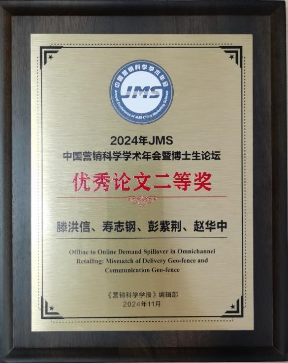 被录用8篇。其中寿志钢教授团队撰写的《Offline to Online Demand Spillover in Omnichannel Retailing: Mismatch of Delivery Geo-fence and Communication Geo-fence》荣获大会”优秀论文二等奖“。