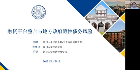 金融研究中心承办的长江论坛第一百五十六讲在腾讯会议平台通过线上方式举行。论坛邀请了厦门大学经济学院金融系教授郭晔做题为“融资平台整合与地方政府隐性债务风险”的学术论文报告。论坛由学院金融系李斌教授主持,学院林晚发、余静文、熊和平等多位老师和学生参加了此次论坛。