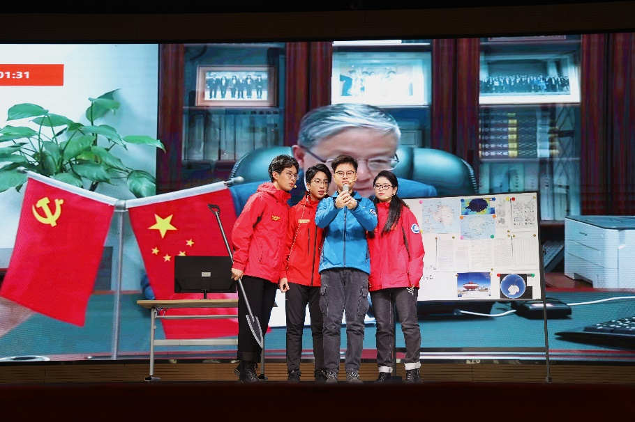 在第三幕中,支部同志们演绎了武大师生参与中国南北极科考,并收到习近平总书记回信的故事。习近平总书记回信勉励武大师生“用国家的大事业磨砺青年人的真本领”,希望武大师生“接续砥砺奋斗,练就过硬本领,勇攀科学高峰”。以获得国家最高科学技术奖的李德仁院士为代表的武大人,积极落实习近平总书记回信精神,在实现高水平科技自立自强中作出了武大贡献。