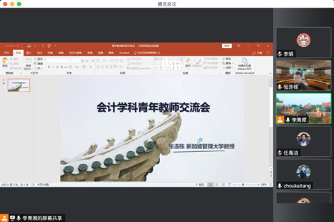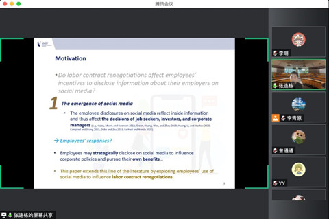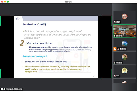 会计系主办的蓝月亮珞珈论坛第97期在线举行。论坛邀请了新加坡管理大学会计学院张连栋教授做题为“社交媒体中的雇员战略披露研究”的学术论文报告。论坛由学院会计系李青原教授主持,学院周楷唐、林晚发等多位老师和学生参加论坛。