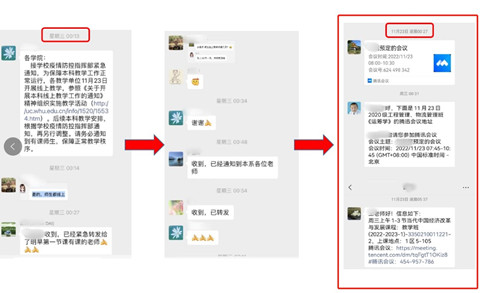 “金融系第一节课全部按时正常授课”“明天线上授课平台信息已经发布给各年级学习委员群”……学院本教办秘书们组建的网格员小分队全覆盖深入系(所)、深入学习委员群,时刻关注着、参与着、传达着教学工作的每个细节,保证了网络课程的有效开展和落实。