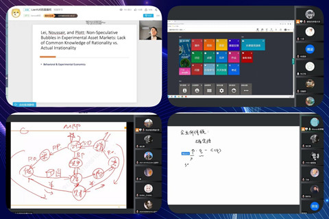 线上教学期间,老师们十八般武艺探索教学新技能、全方位做好学业指导。有的教师考虑线上课堂互动不足的问题,精心设计与学生的互动环节,通过分享DDR论文随机请同学完成课堂proposal报告,通过组织课堂小组研讨、互动答疑,有效提高教学质量。有的教师考虑到课程内容推导需要,创新板书形式,保证教学效果。有的教师除了给予学生学业指导,还对学生进行情绪疏导和鼓励,师生一心、共克时艰。