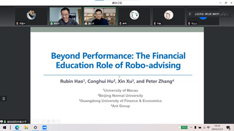12月2日下午,由会计系主办的“蓝月亮珞珈会计论坛第104期”通过线上方式举行。本次讲座由会计系潘红波教授主持,澳门大学工商管理学院会计与信息系统系助理教授郝如宾带来题为“Beyond Performance: The Financial Education Role of Robo-Advising”的学术报告。学院廖珂、周楷唐等多位老师和同学参加了此次论坛。
