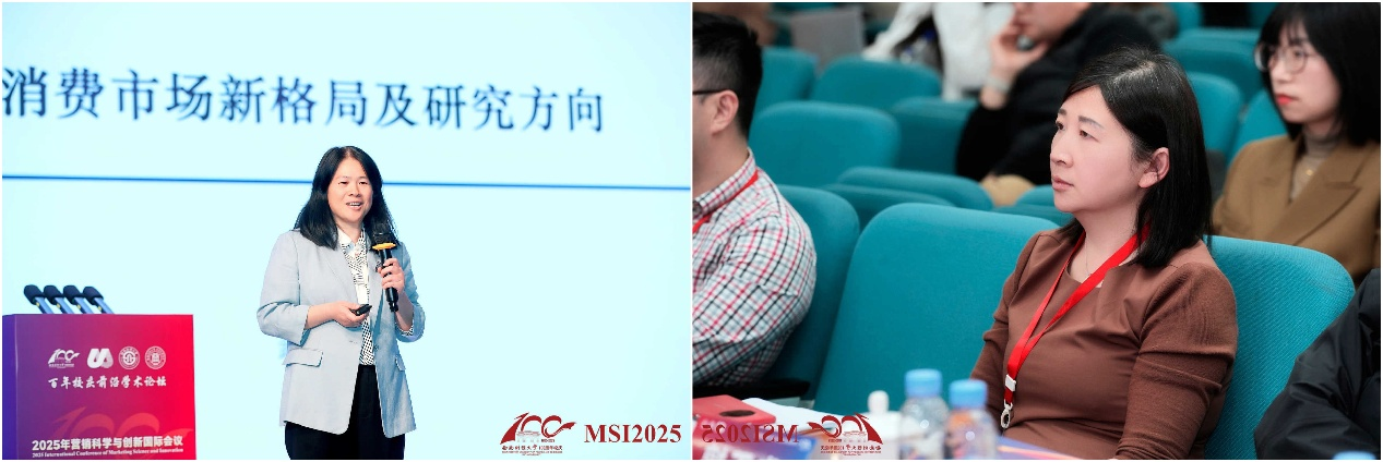 4月12日,曾伏娥教授在“数智消费与行为研究”平行主旨论坛发表题为“消费市场新格局与研究方向”报告。报告指出,消费信心指数不断降低,并不意味着消费者停止消费,而是消费结构发生显著变化。曾教授从功能产品消费、情感产品消费、社会关联产品消费三个角度探讨中国消费新格局、新趋势,深入分析中国消费市场的关键变化及未来发展。报告兼具理论深度与商业现实意义,为相关从业者和市场营销研究者提供参考。徐岚教授在“数智消费与创新实践”平行主旨论坛担任主持人,聚焦人工智能时代营销理论体系与新质生产力研究融合发展,与来自学界、业界的顶尖专家展开深度对话。