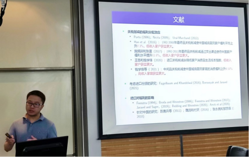论坛中,戴觅教授通过计算家户消费支出中的进口份额,创新性地构建区分进口品和国产品的分析框架,结合了理论和实证详细分析了中国加入WTO后关税下降对城镇居民消费福利的影响,并量化分析关税削减对于不同收入群体造成的不均等贸易利得。