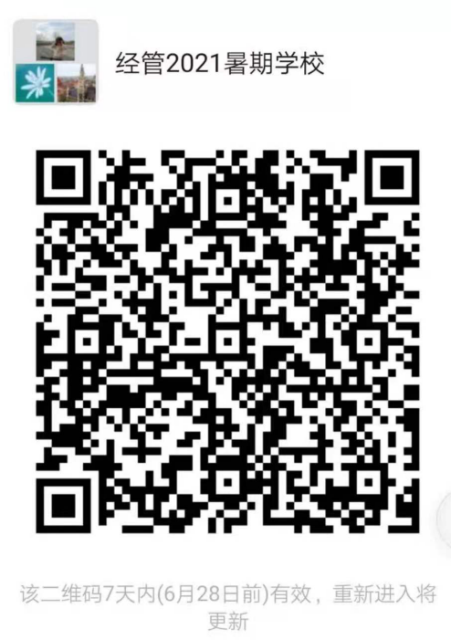 特此通知,请各位同学实名加入“经管2021暑期学校”微信群,二维码如下图: