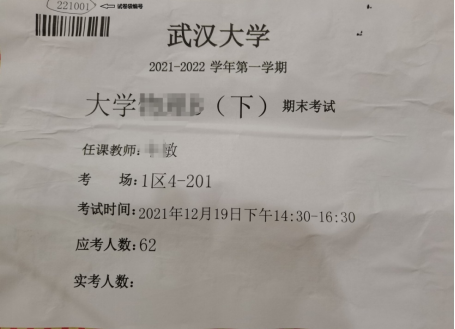 开考前,监考老师先根据考生考场座位号(由本科教务管理系统统一生成)结合考生姓名先行发放答题卡,并告知所有考生,在答题卡相应位置手写姓名及学号并确认答题卡打印信息是否与本人一致(参见答题卡样图)。试卷发放方式与往常考试无差异,答题卡示例:(图片序号改成座位号)