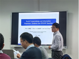 会计系张书敏博士对此进行了点评,她对研究假设、实证设计、经济后果检验以及工具变量的相关性和外生性方面提出了建议。在讨论环节,老师们对文章中社交资本与组织结构之间的关系进行了进一步讨论。