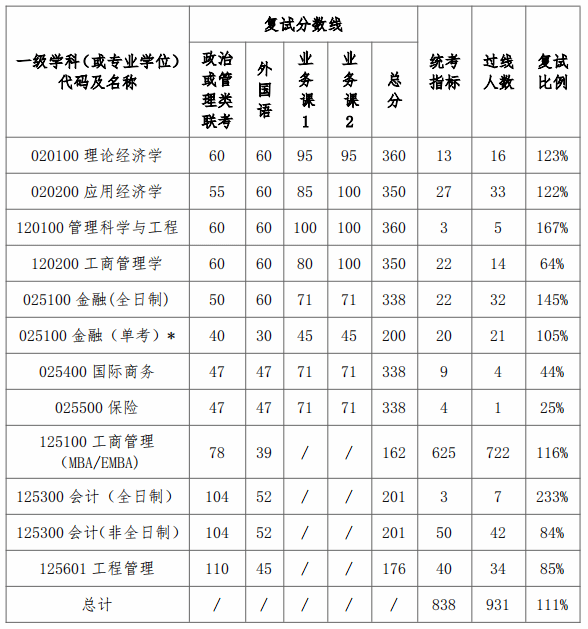 入学考试的总评成绩(初试成绩和复试综合成绩加权分)和复试综合成绩均为百分制。复试综合成绩不合格者(按百分制未达到60分,下同)不予录取。单项面试成绩不合格者不予录取。