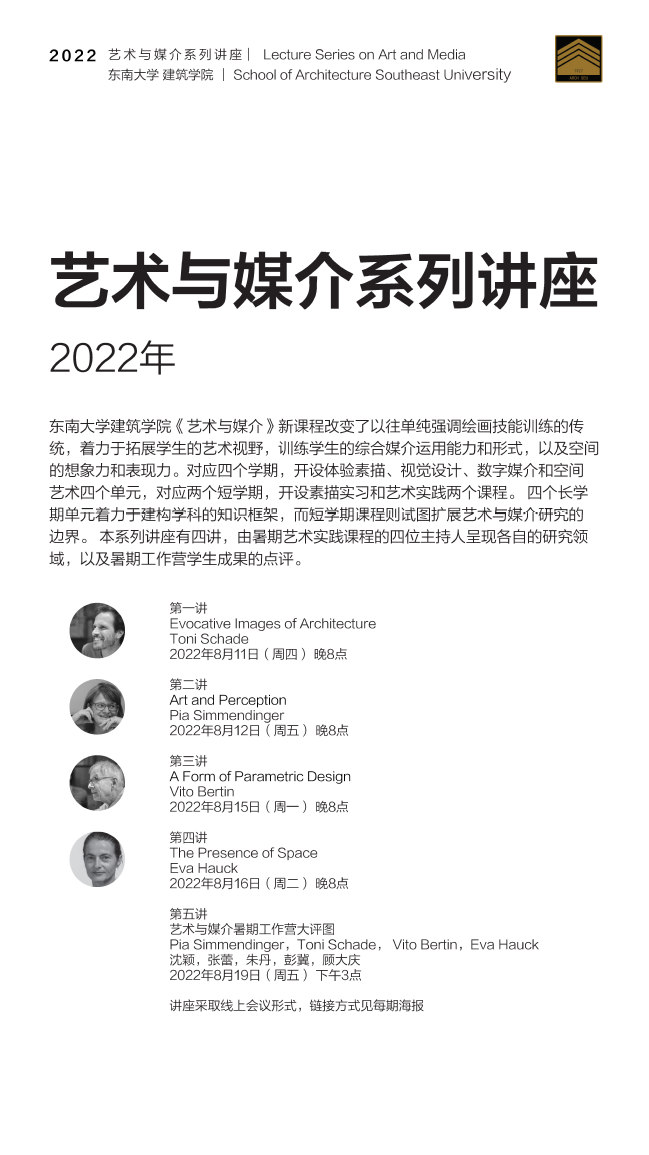 一楼一凤 的建筑美术教学是在艺术表现技法的延续和传承的基础上,更注重美术教育与建筑设计的桥接,以及艺术观念对设计的影响。在院领导的大力支持下,在暑期学校的第1-2周艺术与媒介实践Ⅱ课程(2学分)中,我们邀请了来自瑞士的建筑师、艺术家Pia Simmendinger、建筑师Vito Bertin和来自德国的艺术家Toni Schade来为本科二年级学生开展三个不同课题的有趣的工作营。